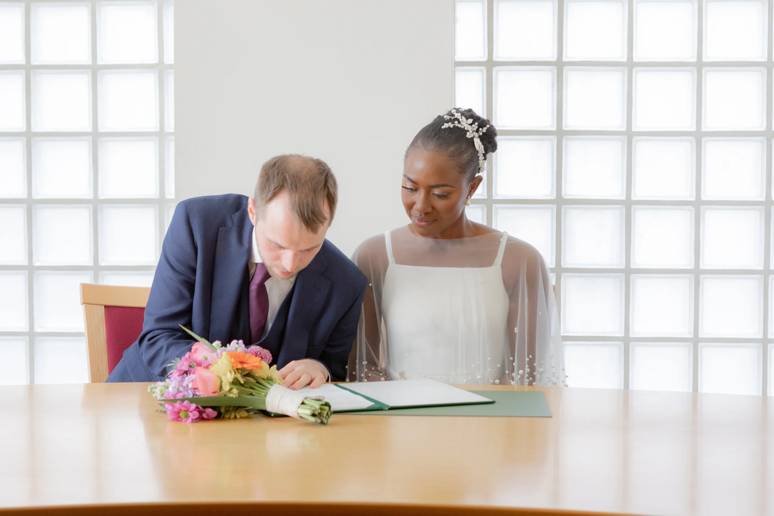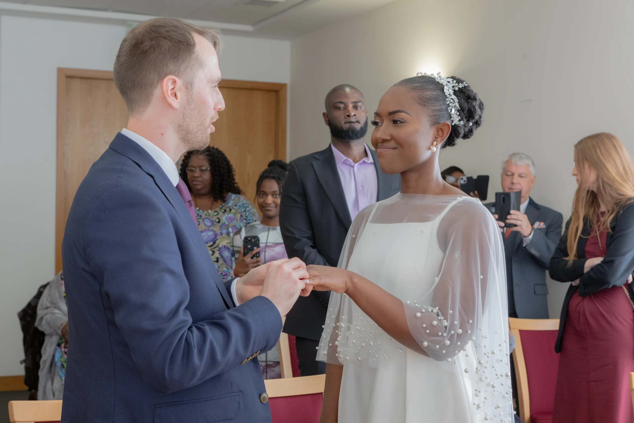 The ceremony took place in one of the elegant rooms at Birmingham Registry Office. A charming and tastefully adorned with soft lighting and classic décor. With just a few rows of chairs filled with beaming family and friends faces,